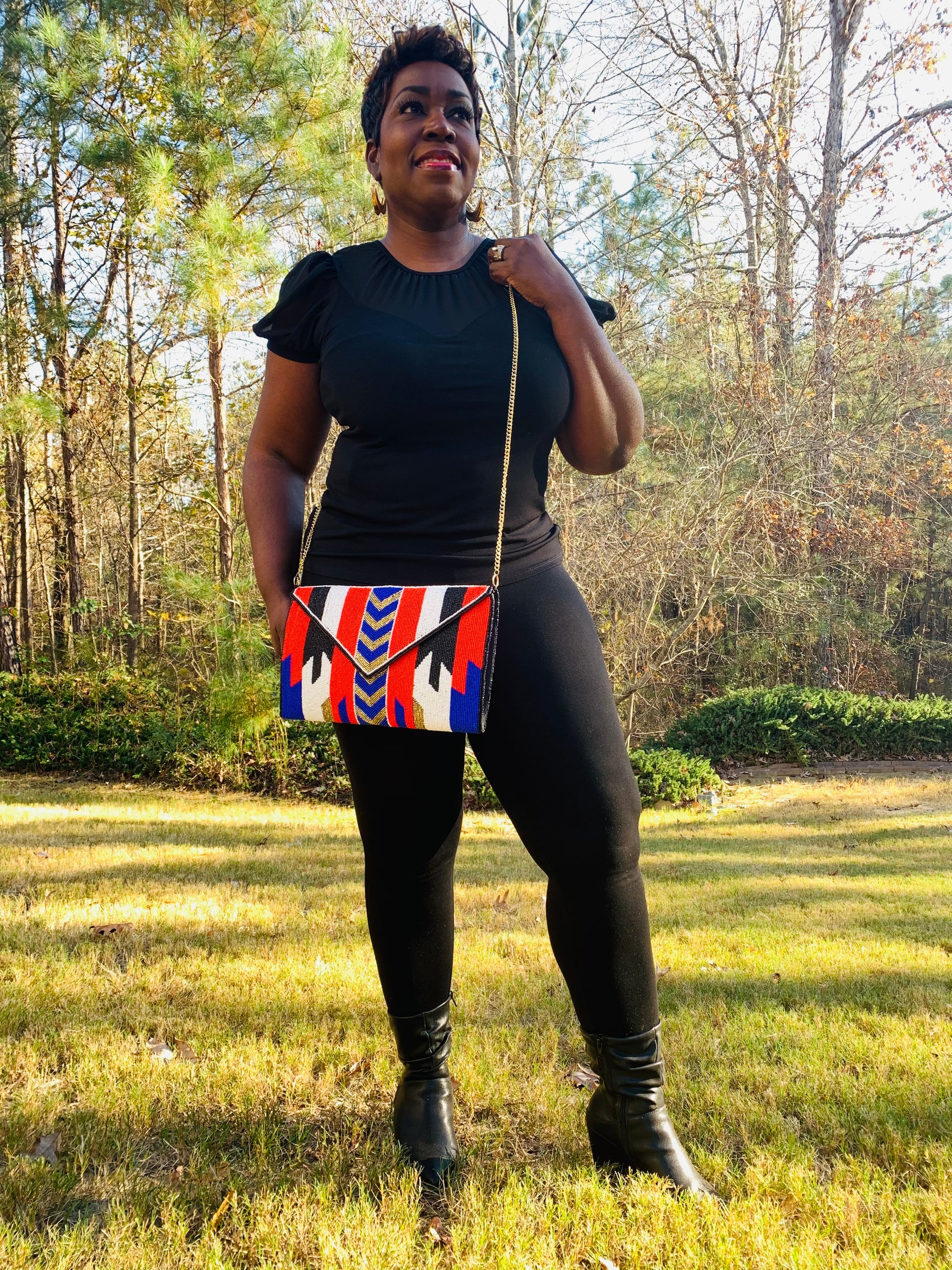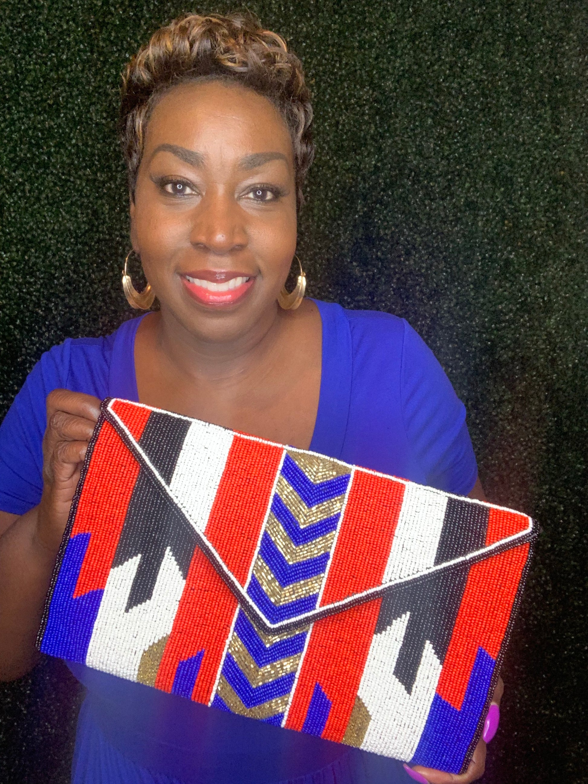Stunning fully beaded clutch that can also be worn as a crossbody. She can be worn dressed up or dressed down. Either way, when you walk into a room Naturi and you will be noticed.